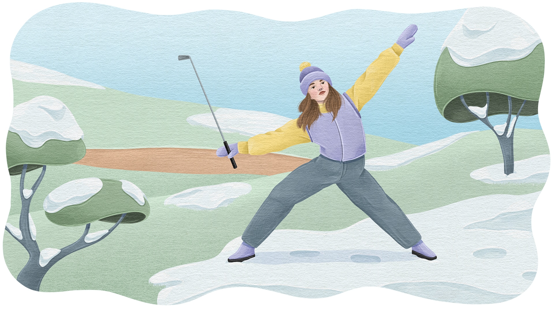 Oavsett din nivå och dina fysiska förutsättningar kan kallt väder få dina muskler att dra ihop sig och orsaka stelhet i lederna. Lägg lite extra tid på att värma upp innan din rond för att bibehålla flexibiliteten och förhindra skador och obehag. Här hittar du tips på bra övningar.