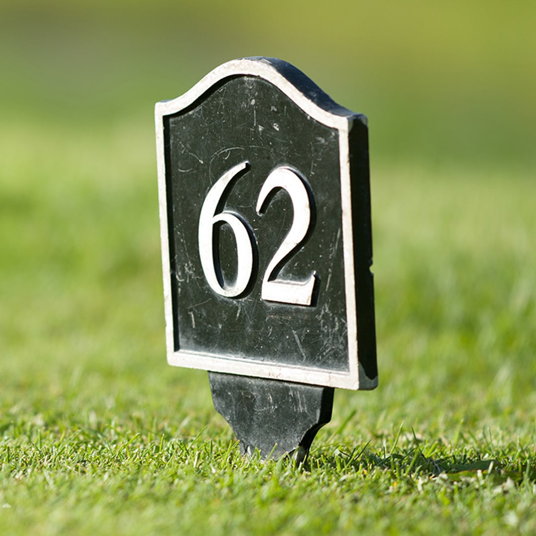 Teemarkeringarna visar längden på banan i hundra meter. Exempelvis är 60-tee för en bana som är 6 000 meter lång, medan 50-tee är för en bana som är 5 000 meter lång.