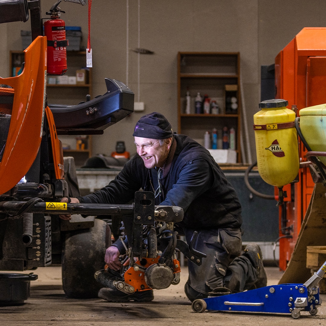 Mikael Eriksson ser över maskinparken så att allt är redo för säsongen.