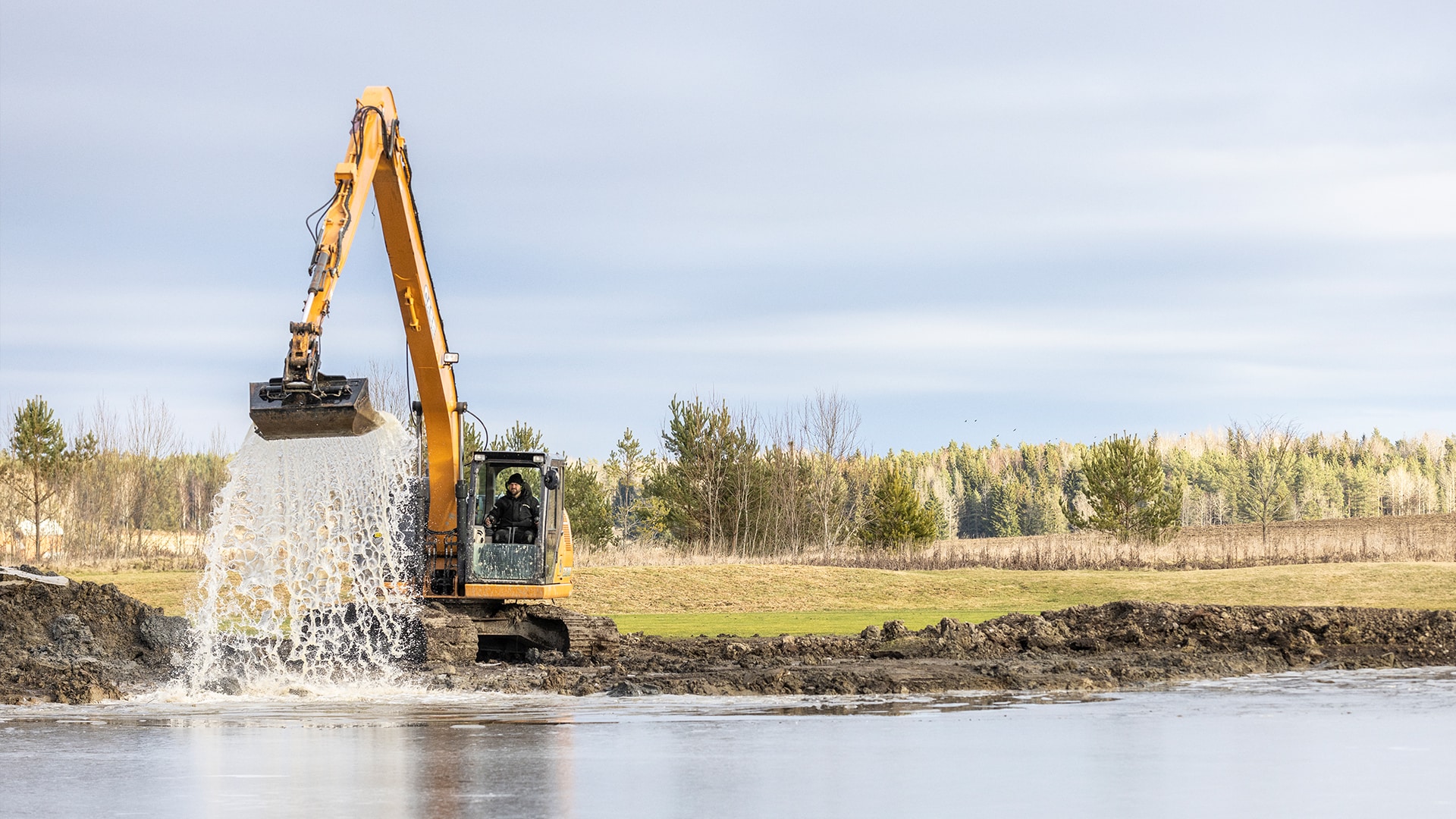 Just den här dagen, i tundrafrosten i Uppland, gräver man i ett vattenhinder på hål tre. Det ska bli en större damm för att säkra mer bevattning. Samtidigt pågår arbete på hål 13 för att förbättra vägarna. Samt att det på flera ställen jobbas med dräneringen.
