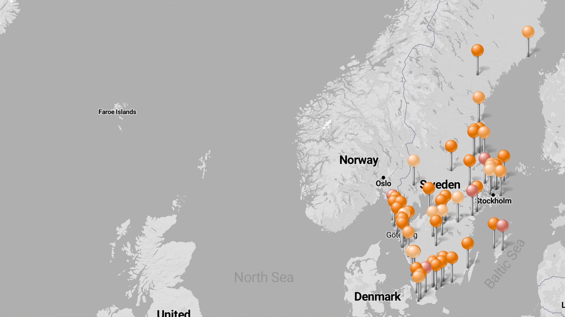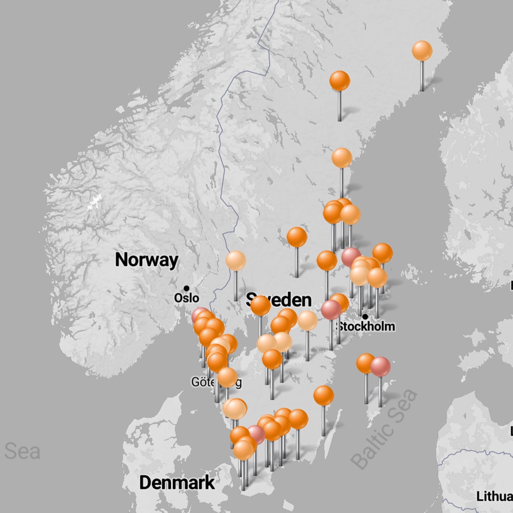 Du hittar kartan över golfklubbar med laddstationer på: chargefinder.com/se/golf