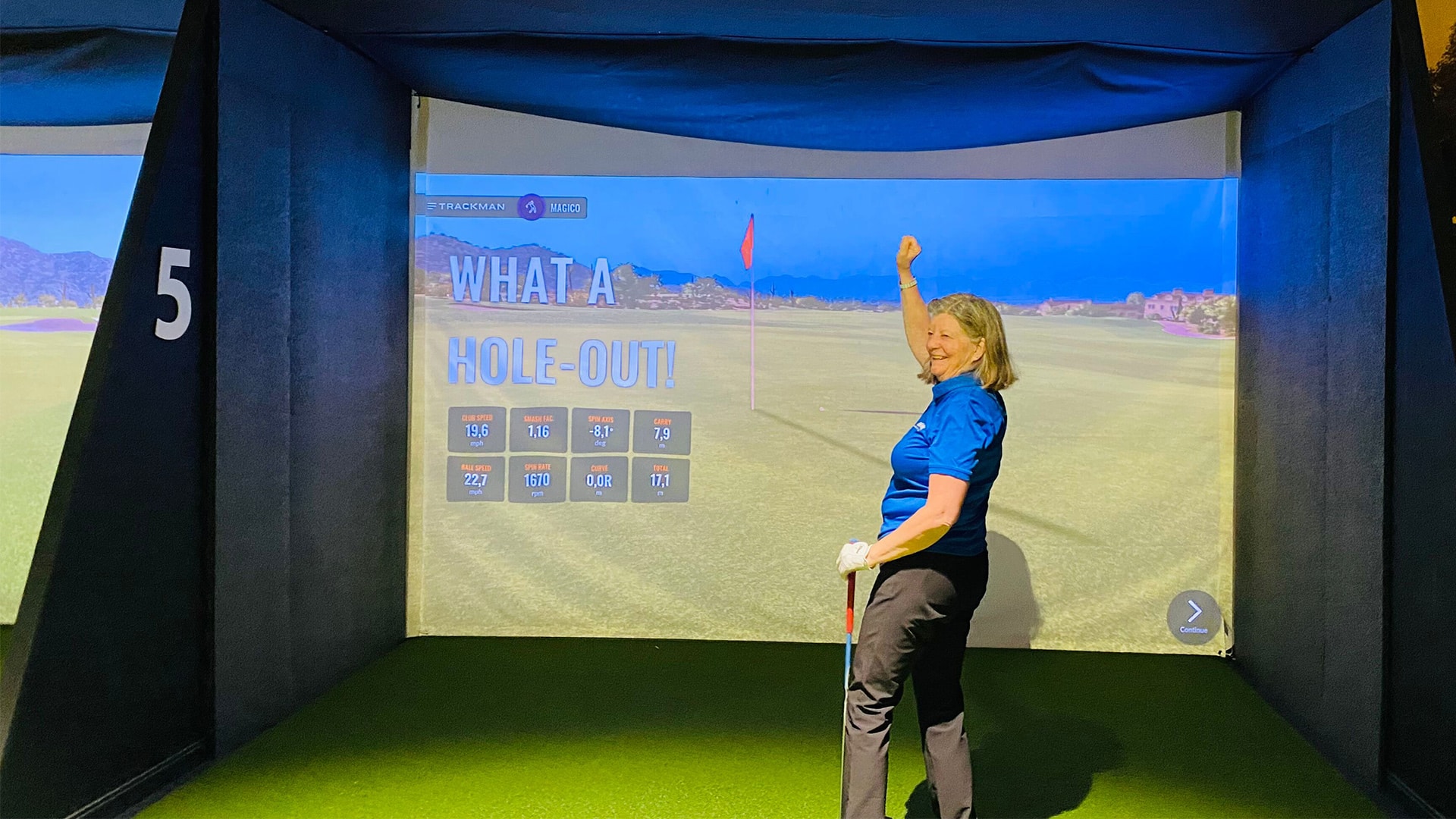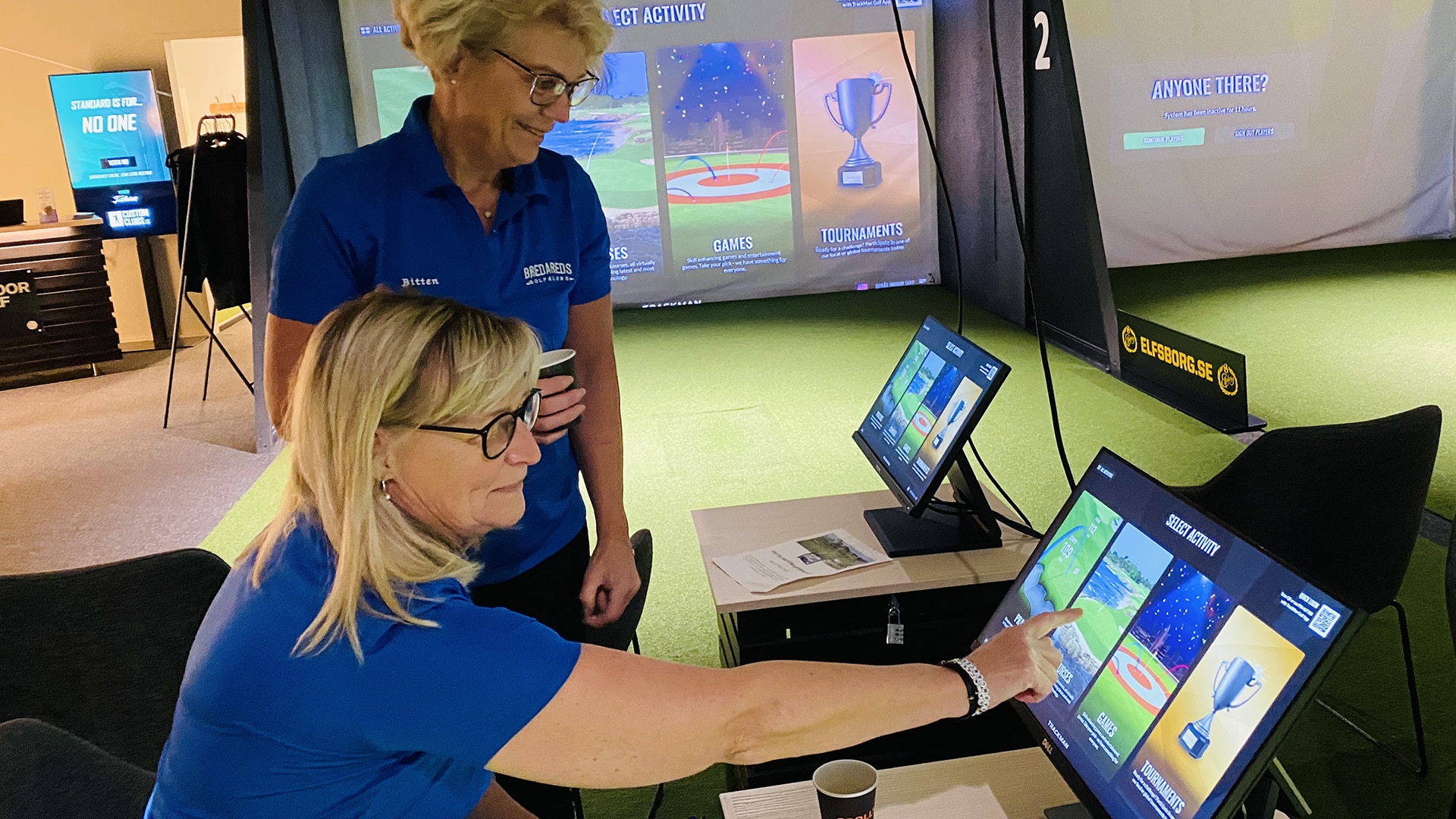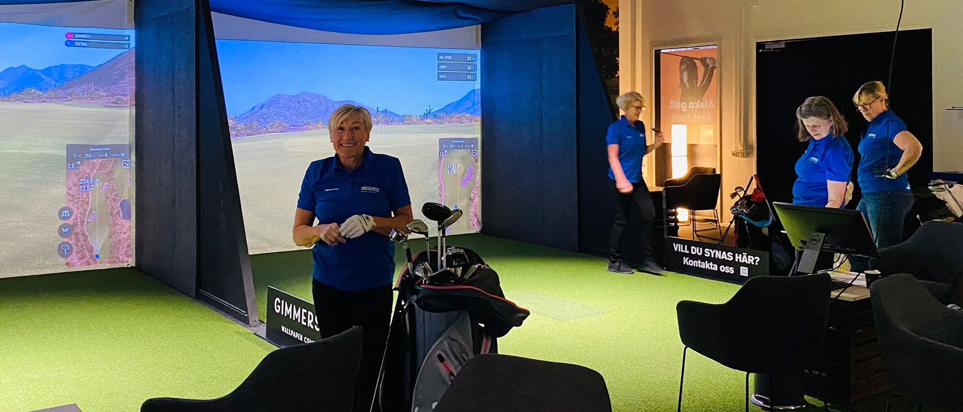 D60-laget från Bredareds Golfklubb spelar simulatorgolf varje vecka. Från vänster: Hannele Parkinen, Britt-Mari Kvist, Margareta Johansson och Ewa Hjelm-Stefansson. Bakom kameran: Cathrine Magnusson.