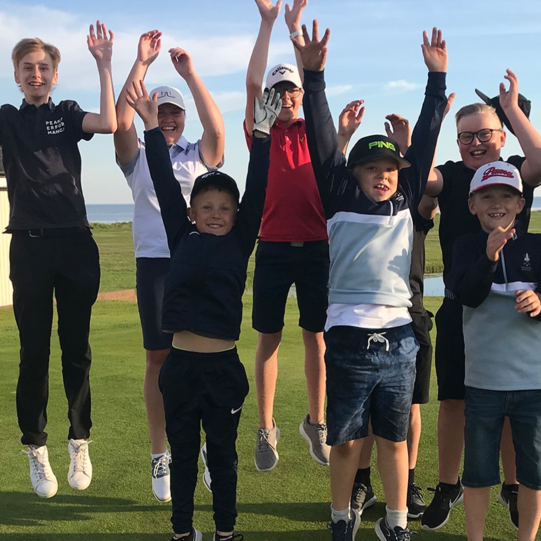Ett gäng glada juniorer på Trelleborgs Golfklubb. Här har man hittat ett eget sätt att motivera unga spelare, och få dem att fortsätta utvecklas inom golfen.