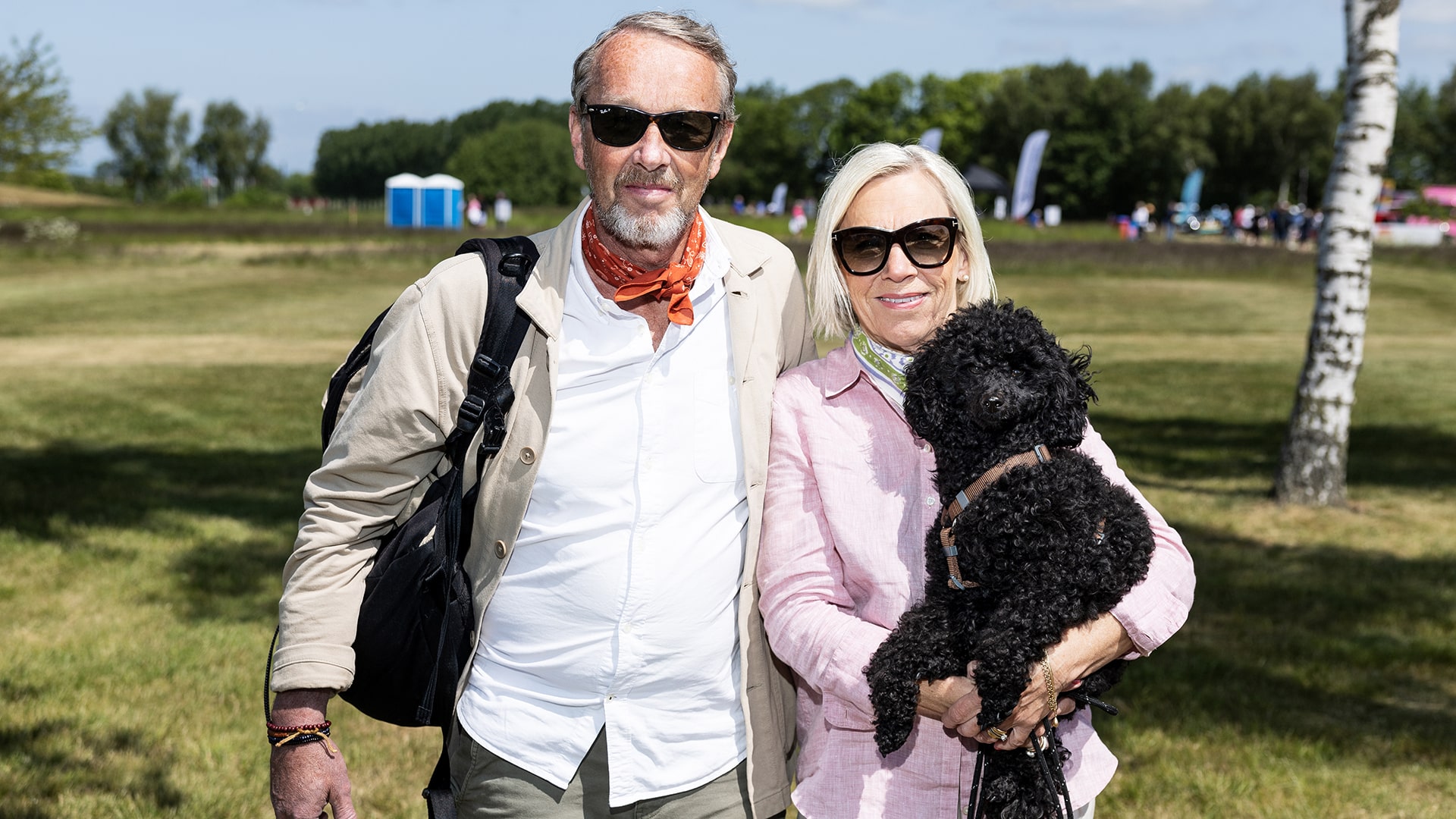 Vi springer på familjen Svensson vid 12:e hålet. Lisa, Per och hunden Dixie har cyklat hit från sommarhuset. De är själva ivriga golfare, medlemmar i Vara-Bjärtorp, men i dag valde de att kolla på golf i stället för att spela.