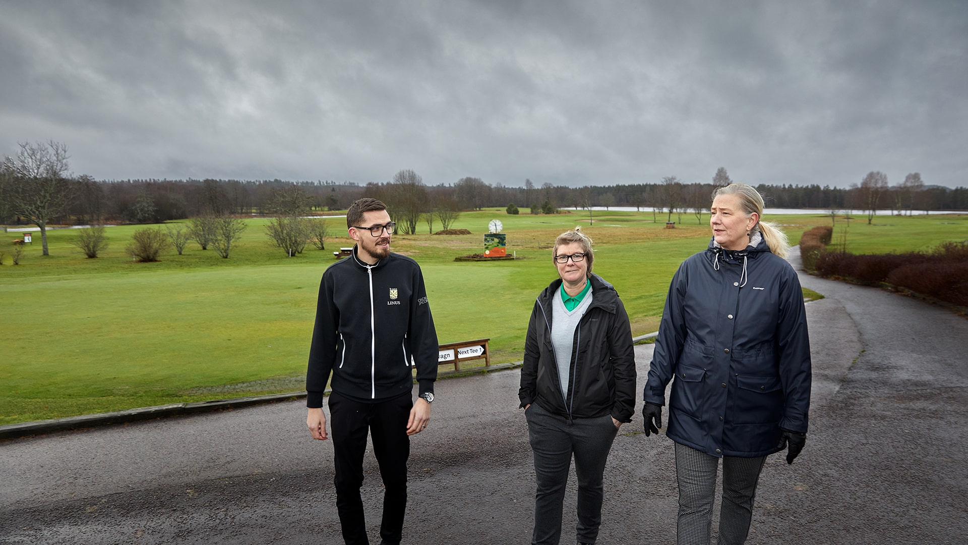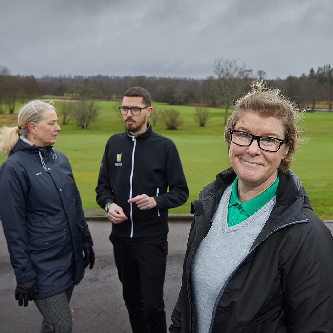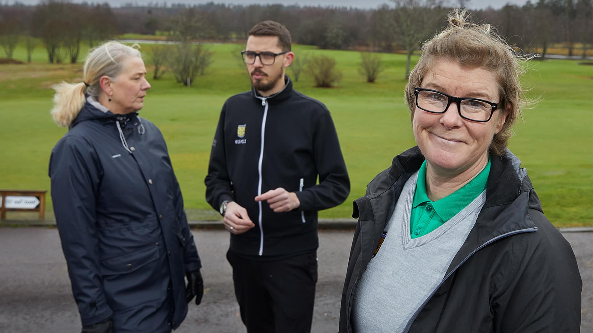 Kinds Golfklubbs förändringsledare Karin Eliasson (till höger), styrelseledamot Pernilla Ragnhage och klubbchef Linus Kulneff är del av utvecklingsgruppen som jobbat med Vision 50/50.