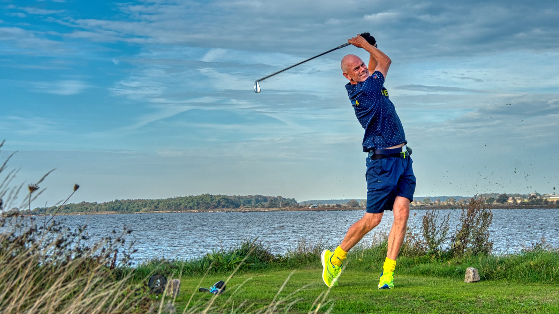 – Kan du jogga fem kilometer, då kan du spela speedgolf. Snöra på skorna, ta en järnsjua i handen och jogga ut lite långsamt på morgonen. Jag fastnade efter min första speedgolfrond för det är riktigt kul – och dessutom en väldigt trevlig community!
