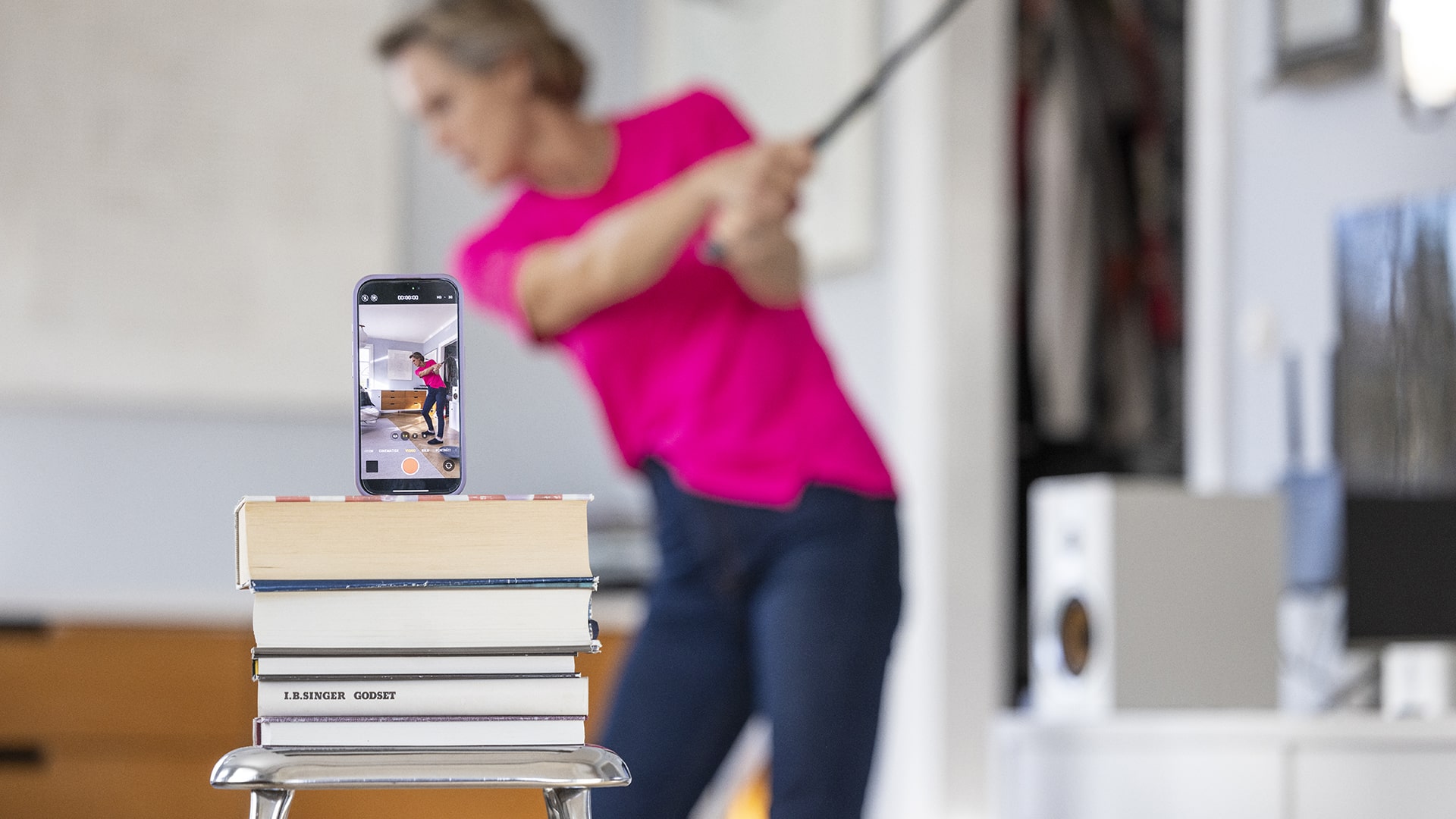 Med hjälp av en stor spegel och en mobiltelefon att filma dig med kan du få feedback på uppställning och svingrörelse och även stämma av de tekniska förändringar du arbetar med.