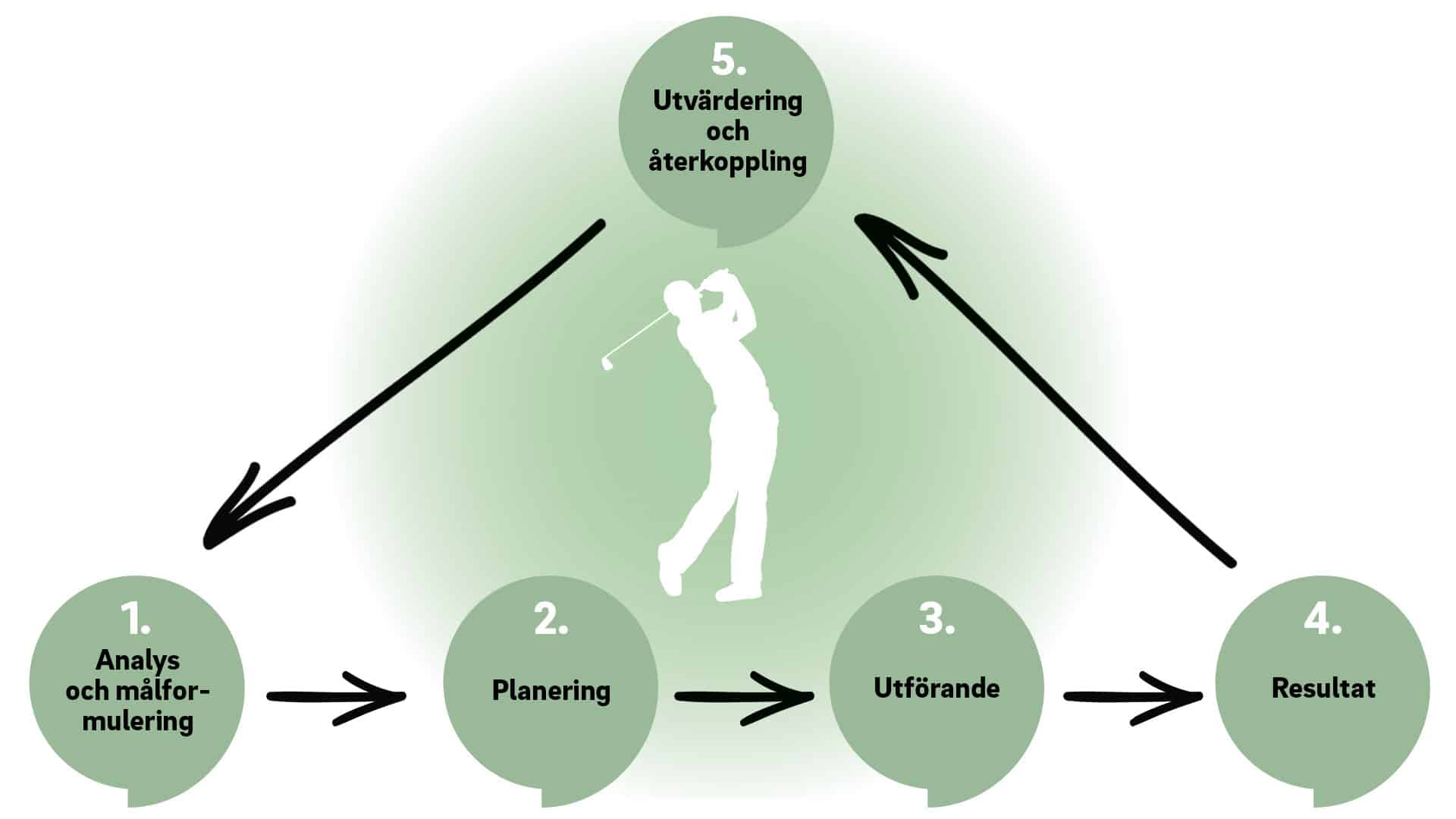 – Idén med att reflektera över sin säsong är för att förhoppningsvis kunna lära sig från olika situationer och göra saker ännu bättre till nästa gång. Den kan handla om ett enskilt slag, en rond, eller en hel säsong, där vi först gör en analys av nuläget och formulerar ett mål med det vi vill ha gjort. Sedan planerar vi för hur vi ska ta oss till målet. Därefter utför vi det vi planerat och får då ett resultat av vårt utförande. Det sista steget, som många tyvärr ofta missar, handlar om att utvärdera och utifrån det återkoppla och göra en ny analys och målformulering. Missar du utvärderingen uteblir lärdomarna.