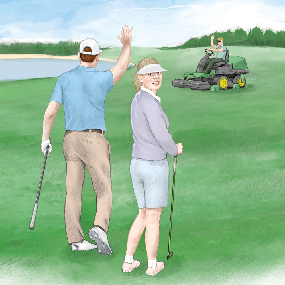 » Att agera med försiktighet och visa hänsyn till banpersonal och andra golfspelare är en självklar del av golfspelet «