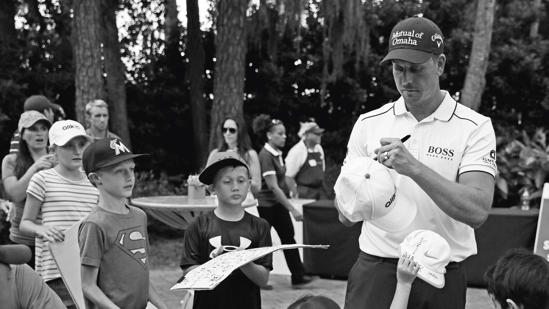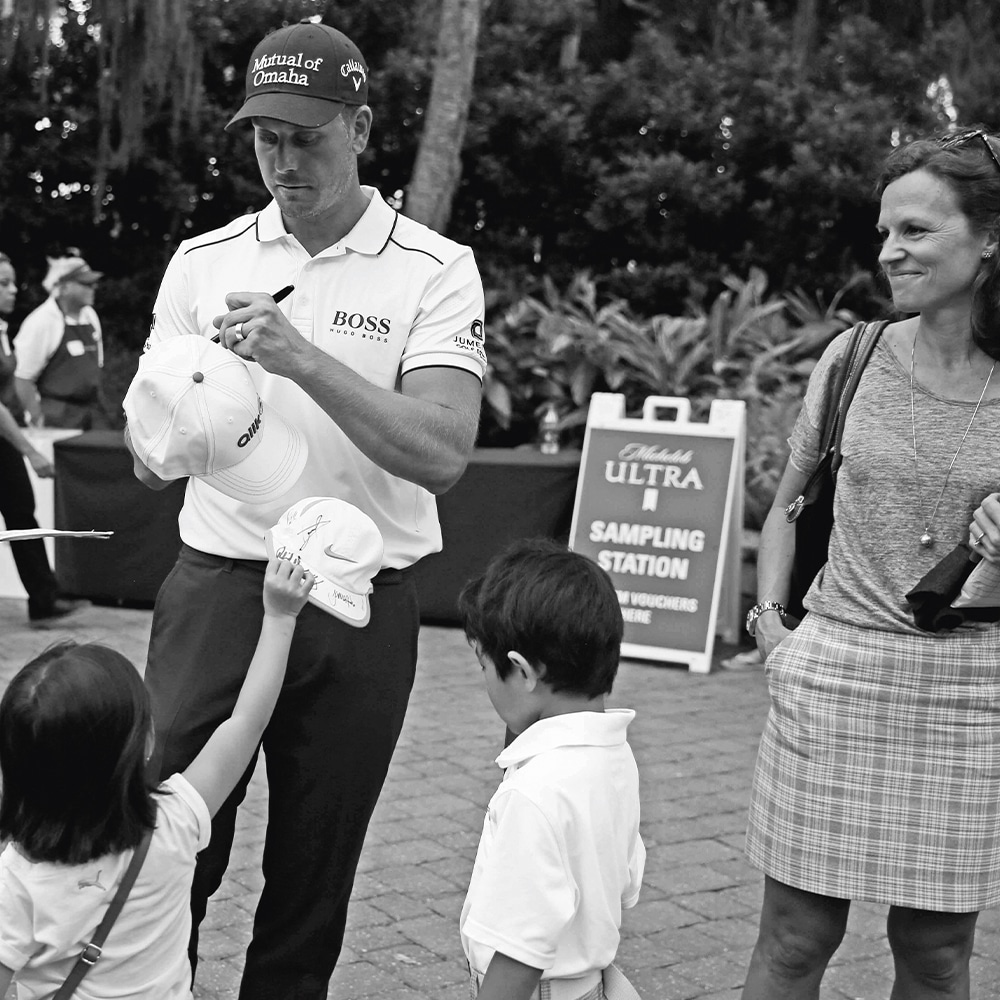 På tävling ser Sarah Skönby till att Henrik Stenson inte upptas av onödiga distraktioner. Att skriva autografer till golffans tar de sig dock alltid tid till.