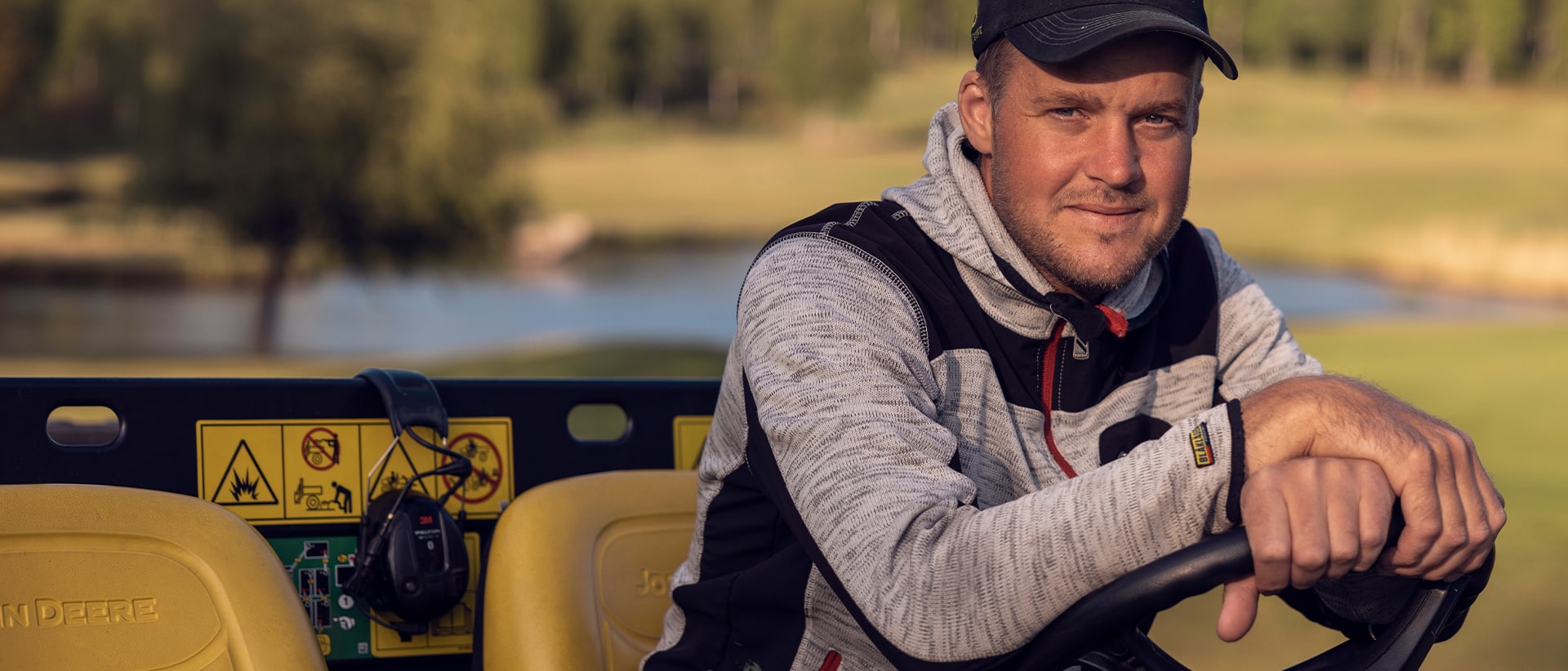 Att påta hemma i trädgården med sekatör och grässax är mångas favoritsysselsättning. Att klippa fairways med en Reelmaster 3100 är det däremot få som ägnar sig åt. Erik Carlo är Course Manager på Nässjö Golfklubb och vet precis hur en fairwayklippare ska hanteras.
