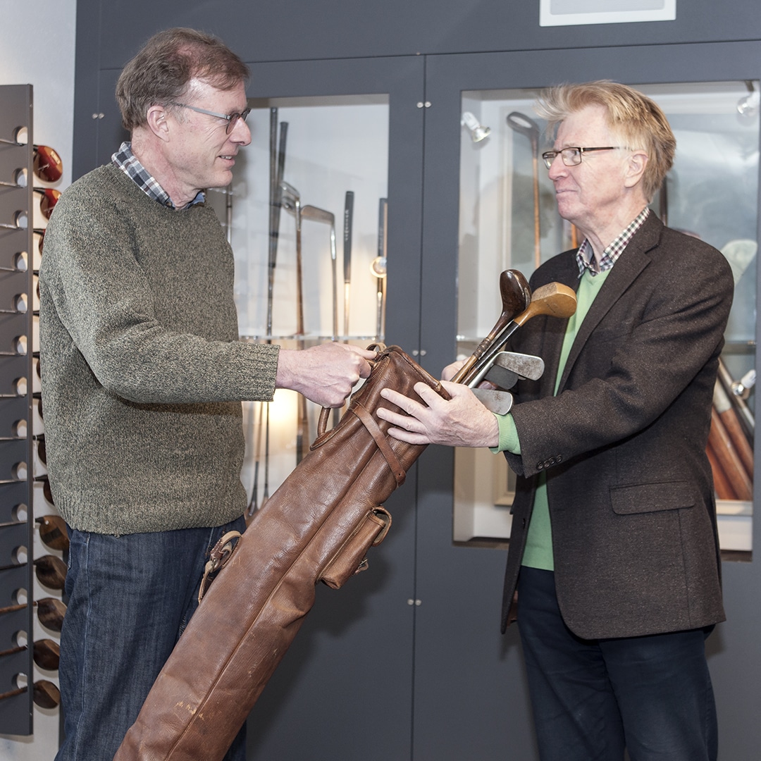 – Kronprinsessan Margareta gifte sig med Gustav Adolf 1905 och inför sin resa hit till Sverige köpte hon ett golfset i London. Det har vi fått ta hand om. Kronprinsessan var faktiskt en viktig person för svensk golfs utveckling då hon fick hela sin familj att börja spela, vilket hade stor betydelse i att legitimera golfen i Sverige. Själv var hon en duktig spelare, hon hade ju vuxit upp med golf och kom faktiskt till final i SM 1914, berättar Göran.
