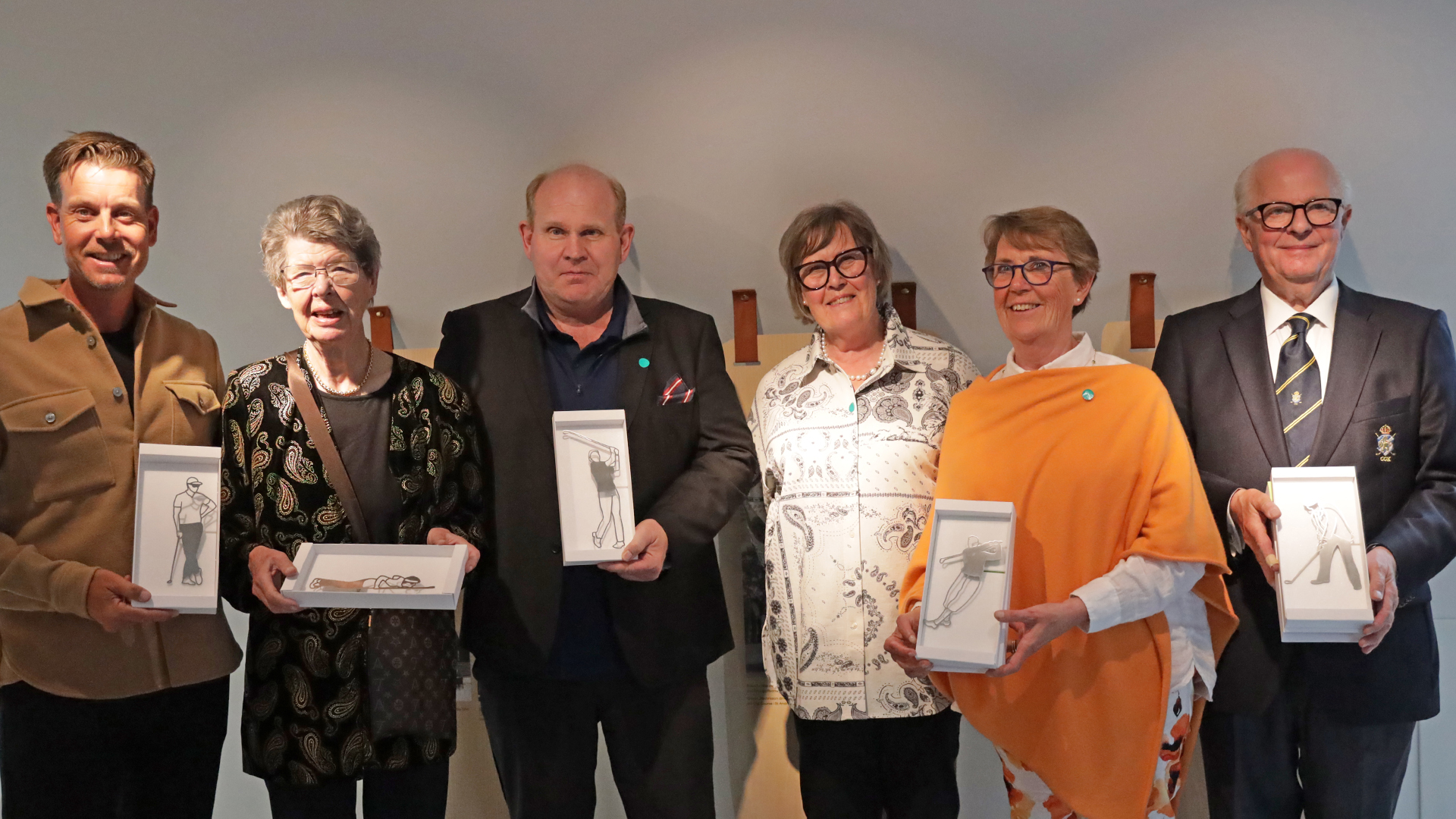 Fem av det första, stolta, gänget som valdes in i Svenska Golfmuseets hall of fame: Henrik Stenson, Liv Wollin, Tommie Tumba (son till Sven Tumba), Lotta Norlander och Sanna Skeppstedt Hedskog (barnbarn till Erik Runfelt)